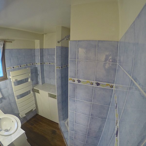 Il s’agit d’une salle de bain de 4,8m2 située Rez de chaussée dans un pavillon individuel.