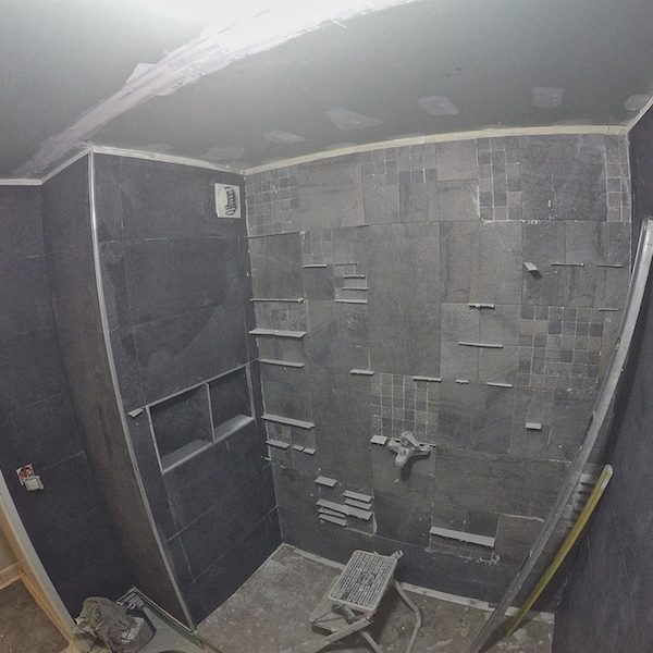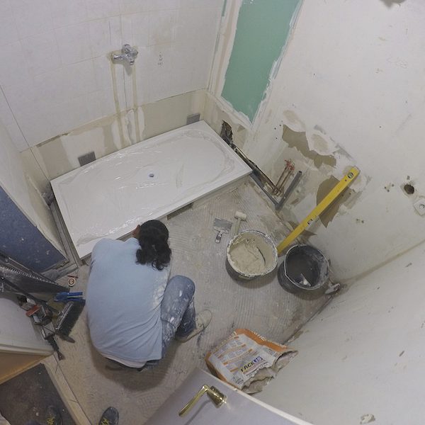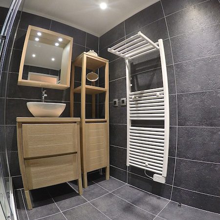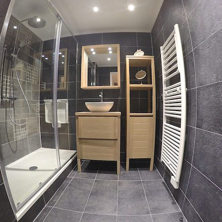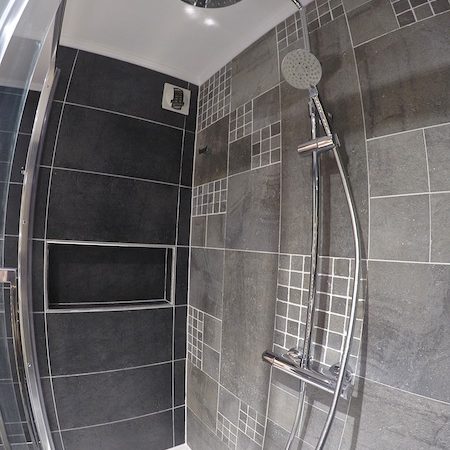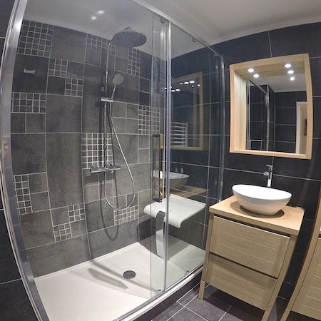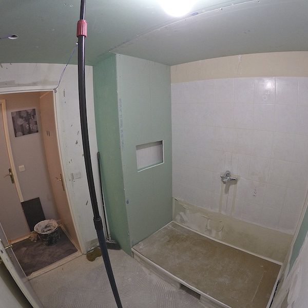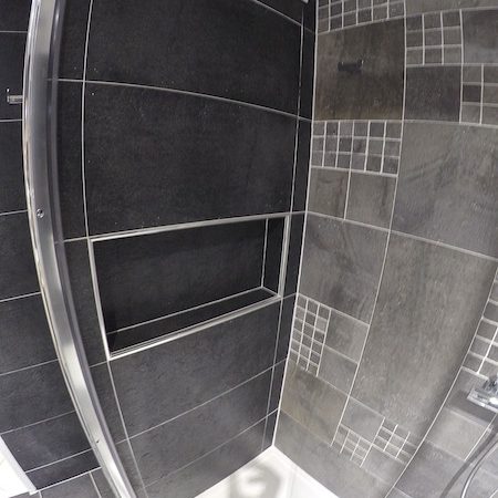 - La création d’une niche carrelée dans l’espace de douche permettant de poser les produits corporels
