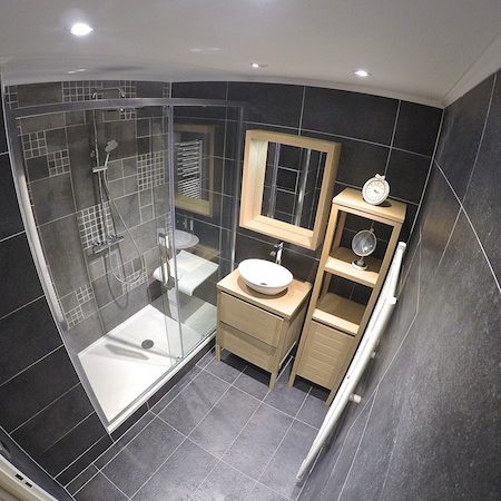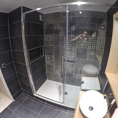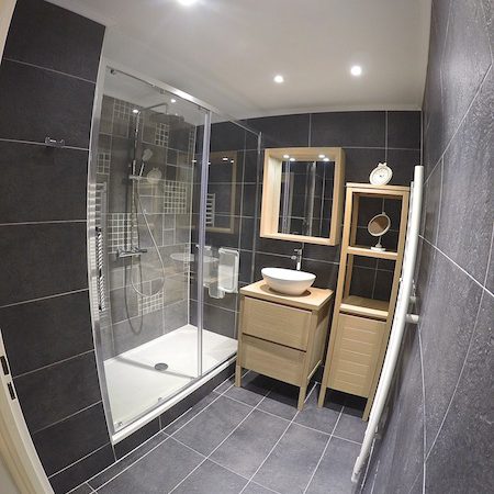 - Création d’un espace de douche de 160 x 80 disposant d’un siège de repos escamotable de grande marque (PELLET)