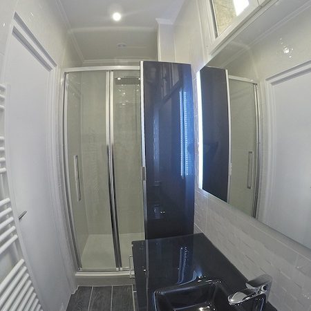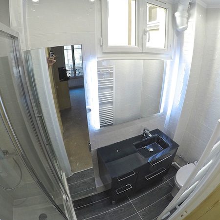 Il s’agit d’une salle de bain de 3m2 située dans un appartement.
