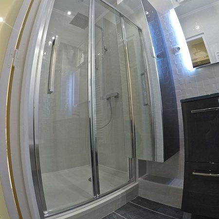 - La pose d’un receveur de douche ultra-plat (90cm x 90cm)