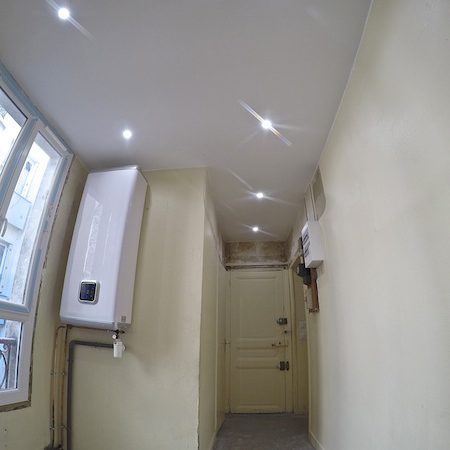 - La pose d’un faux plafond dans l’entrée + cuisine disposant de 6 projecteurs LED