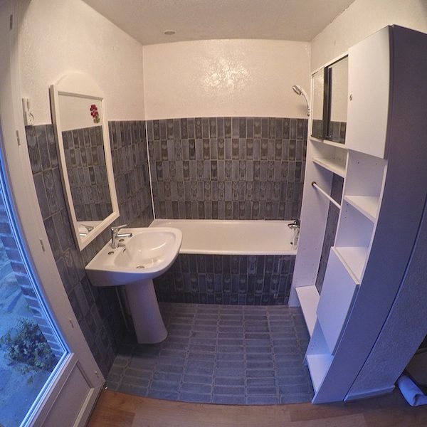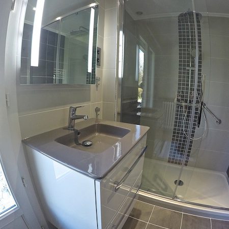 Il s’agit d’une salle de bain de 2,60m2 située au rez de chaussée du pavillon.