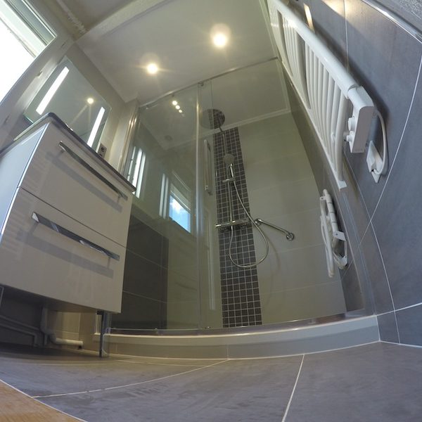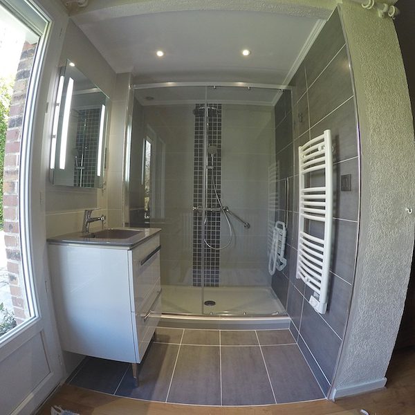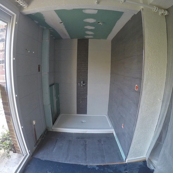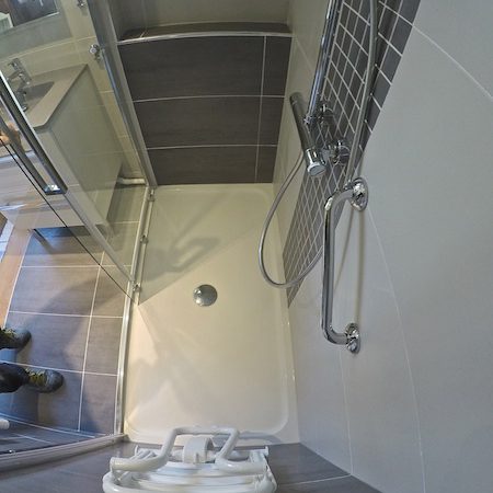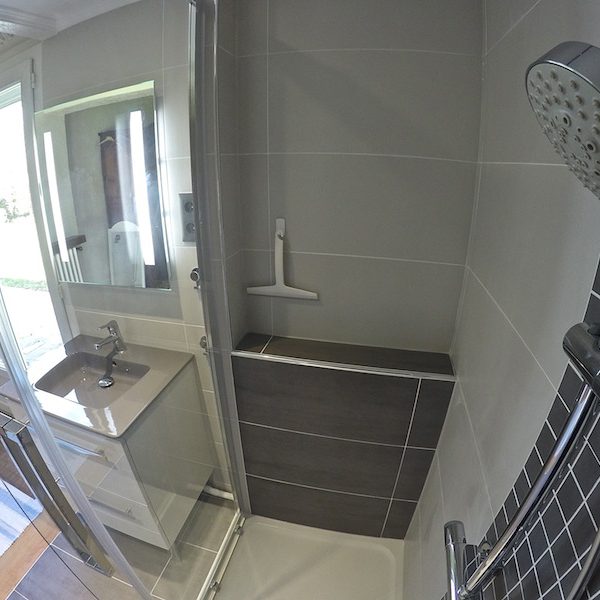 - Création d’un espace de douche avec pose d’un receveur ultra-plat 140cm x 80cm