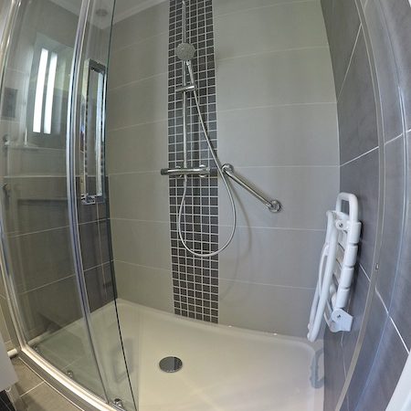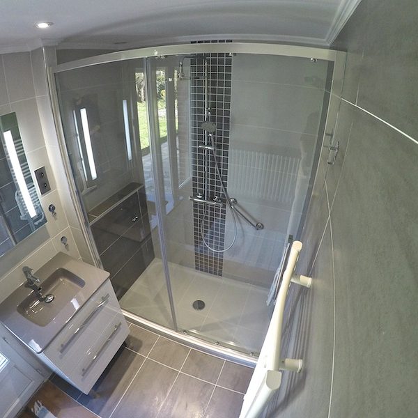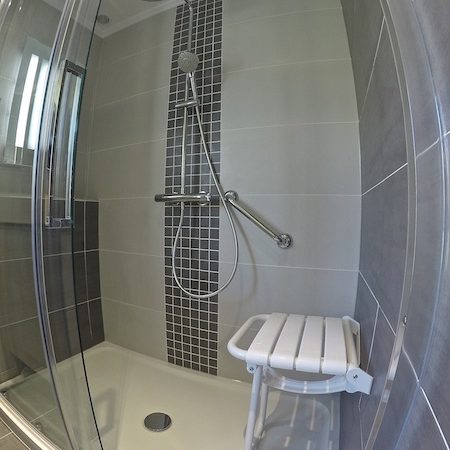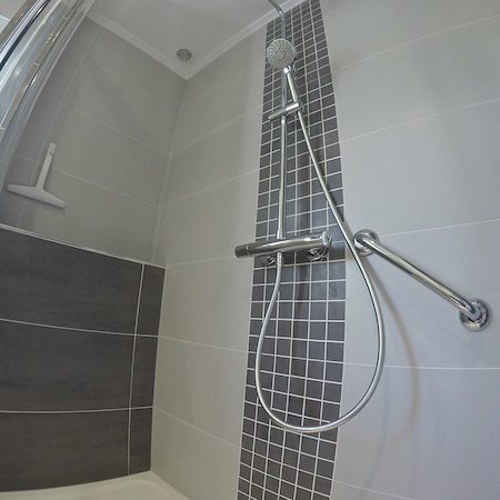 - Pose d’accessoires de salle de bain tels que siège de douche, barre d’appui, patère et raclette.