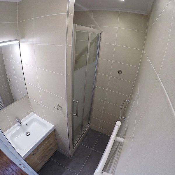 - Pose d’un receveur ultra-plat de 80cm x 80cm