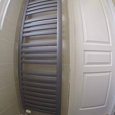 - Pose d’un radiateur à eau chaude gris anthracite d’une puissance de 750W
