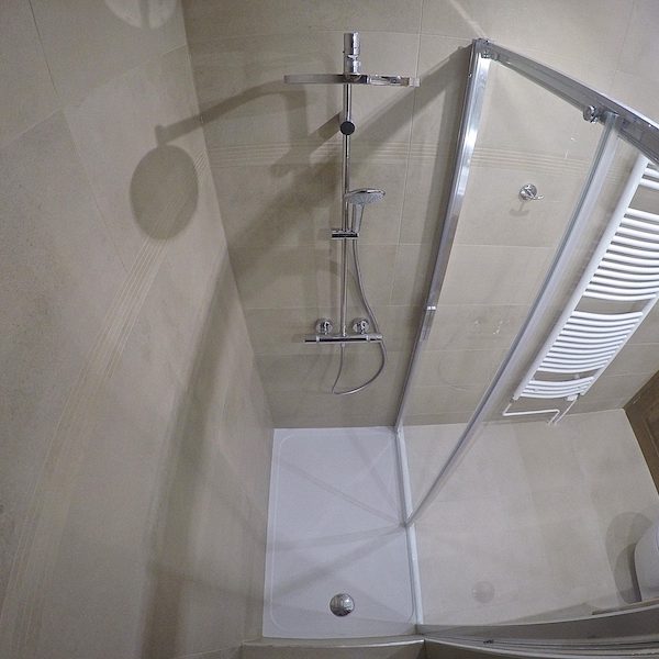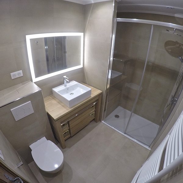 - Pose d’un receveur ultra-plat de 120cm x 80cm de la marque VILLEROY & BOCH, gamme LIFETIME +