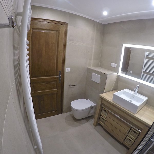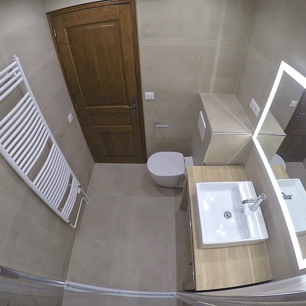 - Pose d’accessoires de confort (patère, raclette, dérouleur de papier WC)