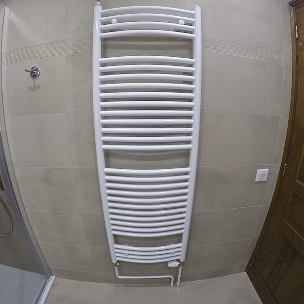 - Pose d’un radiateur sèche serviette à eau chaude de la marque ACOVA, gamme PALMA SPA
