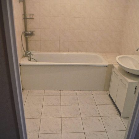 Il s’agit d’une salle de bain de 4,5m2 située au cinquième étage d’une petite co-propriété.