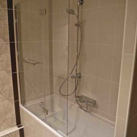 - La pose d’un écran de baignoire composé de deux vantaux mobiles