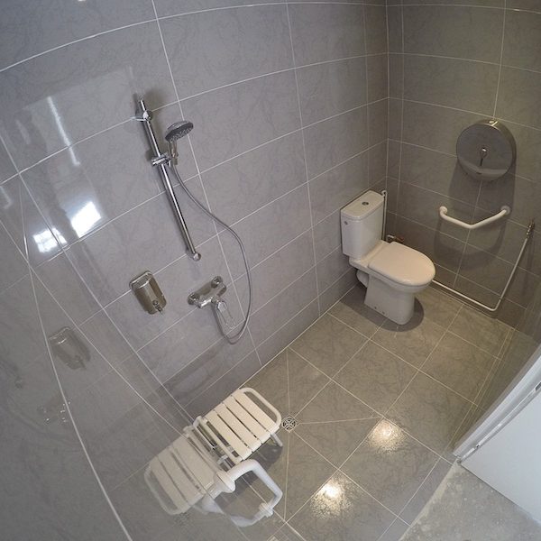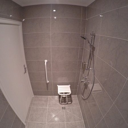 - Pose d’équipement dédiés aux personnes à mobilité réduite (fauteuil de douche, barre d’appui, robinetterie adaptée)