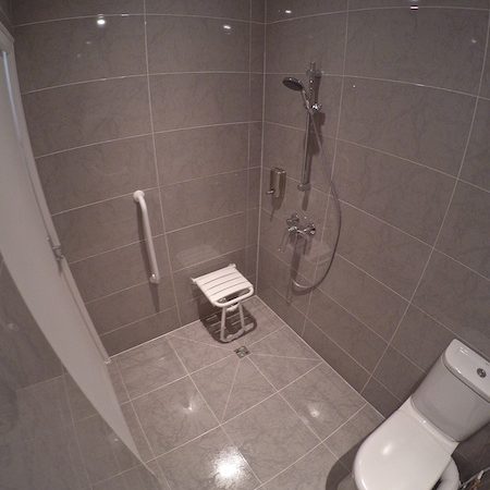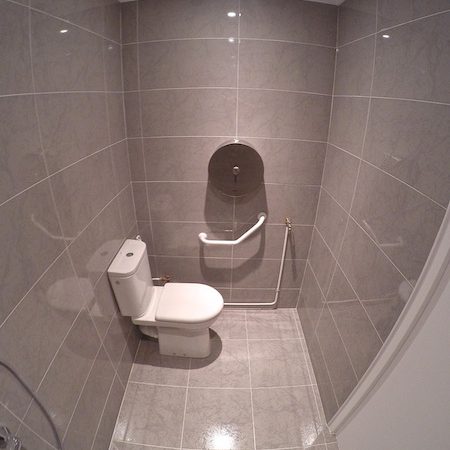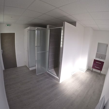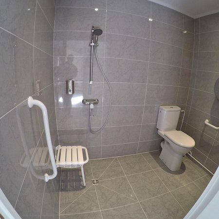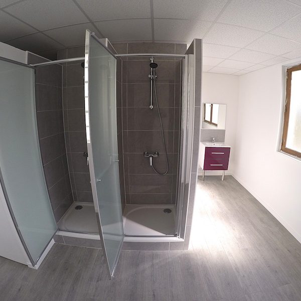 - Réalisation d’une salle de bain dédiée aux personnes à mobilité réduite (local adapté au passage d’un fauteuil roulant)