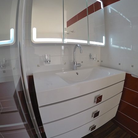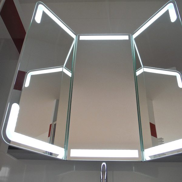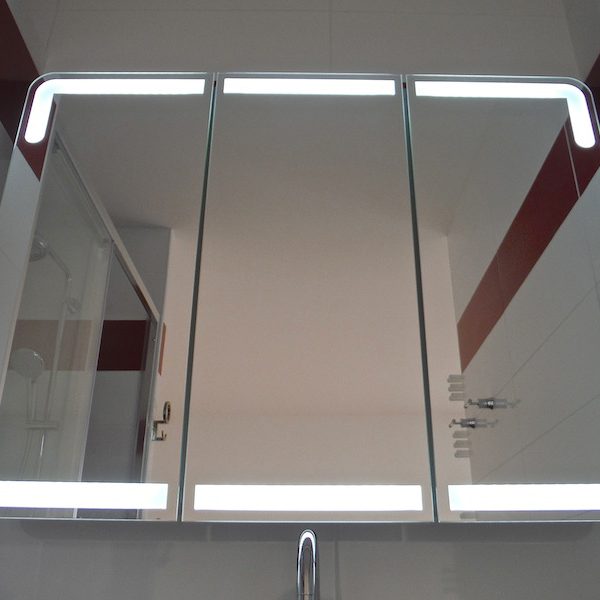 - La pose d’une armoire de toilette trois portes comprenant un éclairage à LED intégré, série LUX