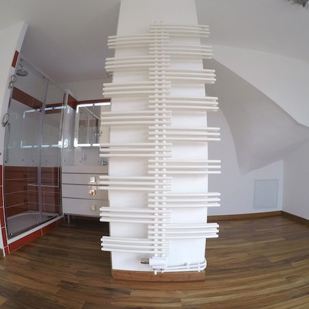 - La pose d’un radiateur sèche serviette haut de gamme de marque ZHENDER, série YUCCA