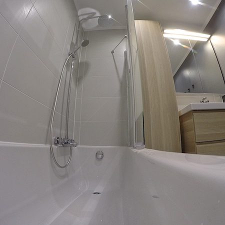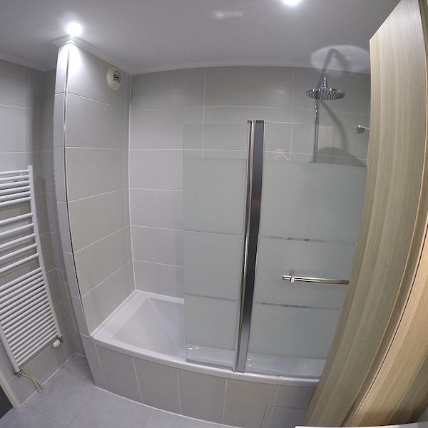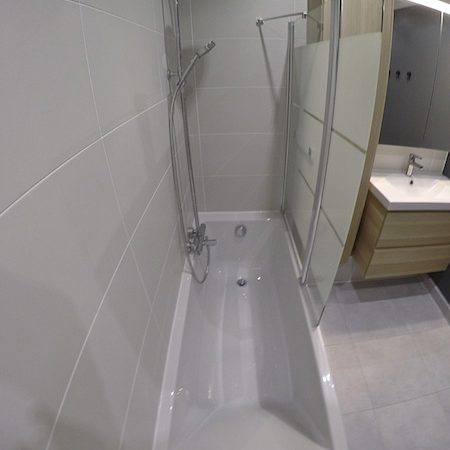 – Pose d’une baignoire à fond plat 170cm x 70cm + écran de baignoire