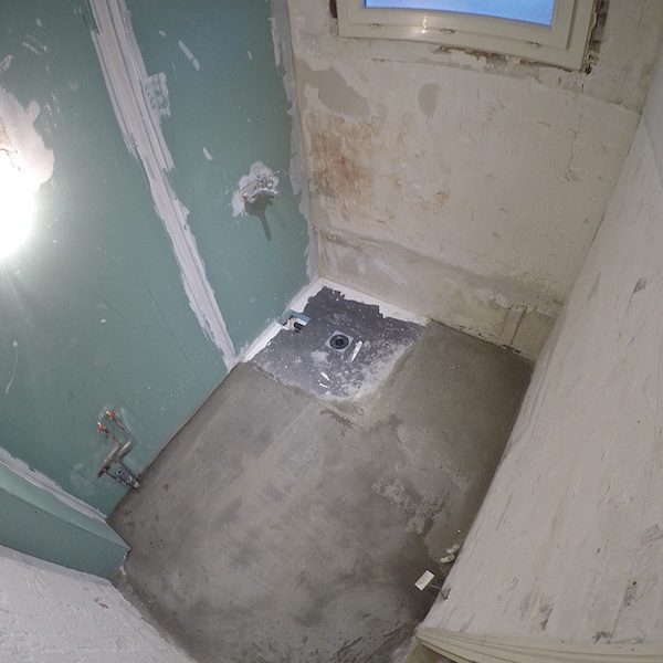 - La création d’un espace de douche à l’Italienne de dimensions 90cm x 100cm