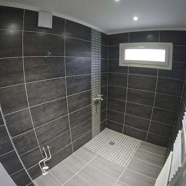 - Un nouvel espace de douche sans différences de niveaux avec le sol