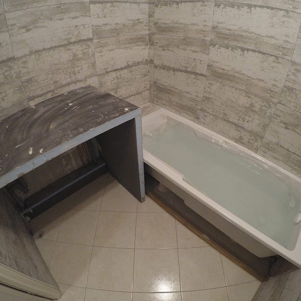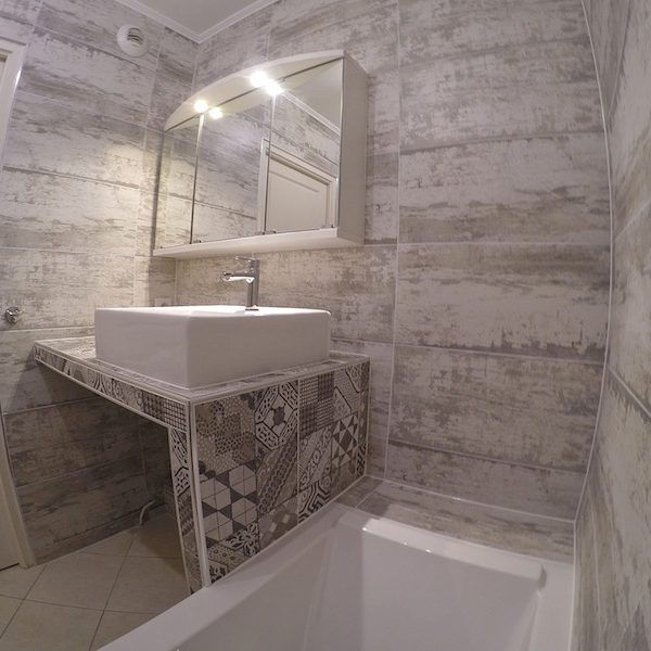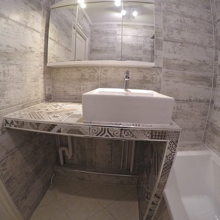 - La fabrication d’un plan carrelé afin de permettre la pose d’une vasque.